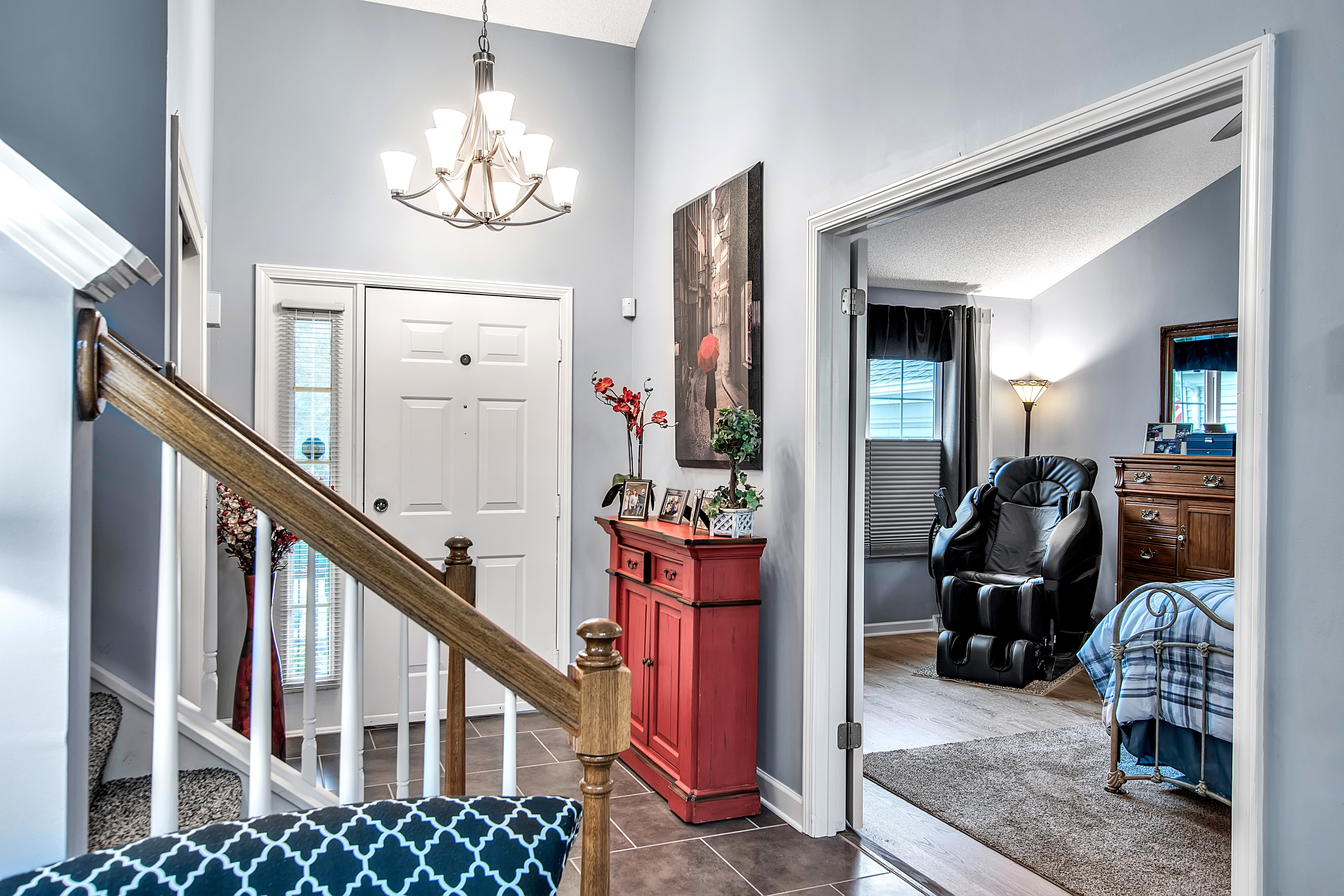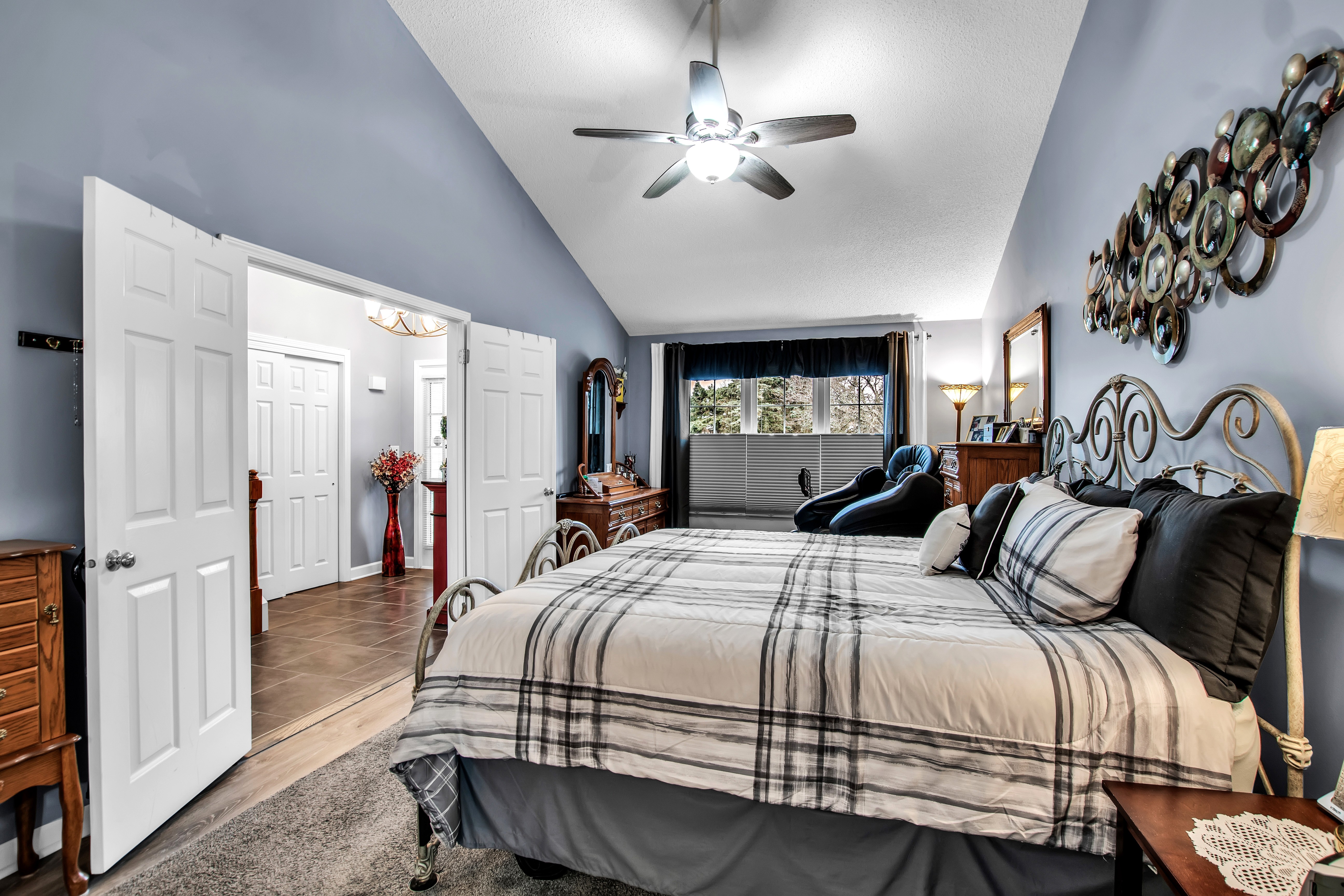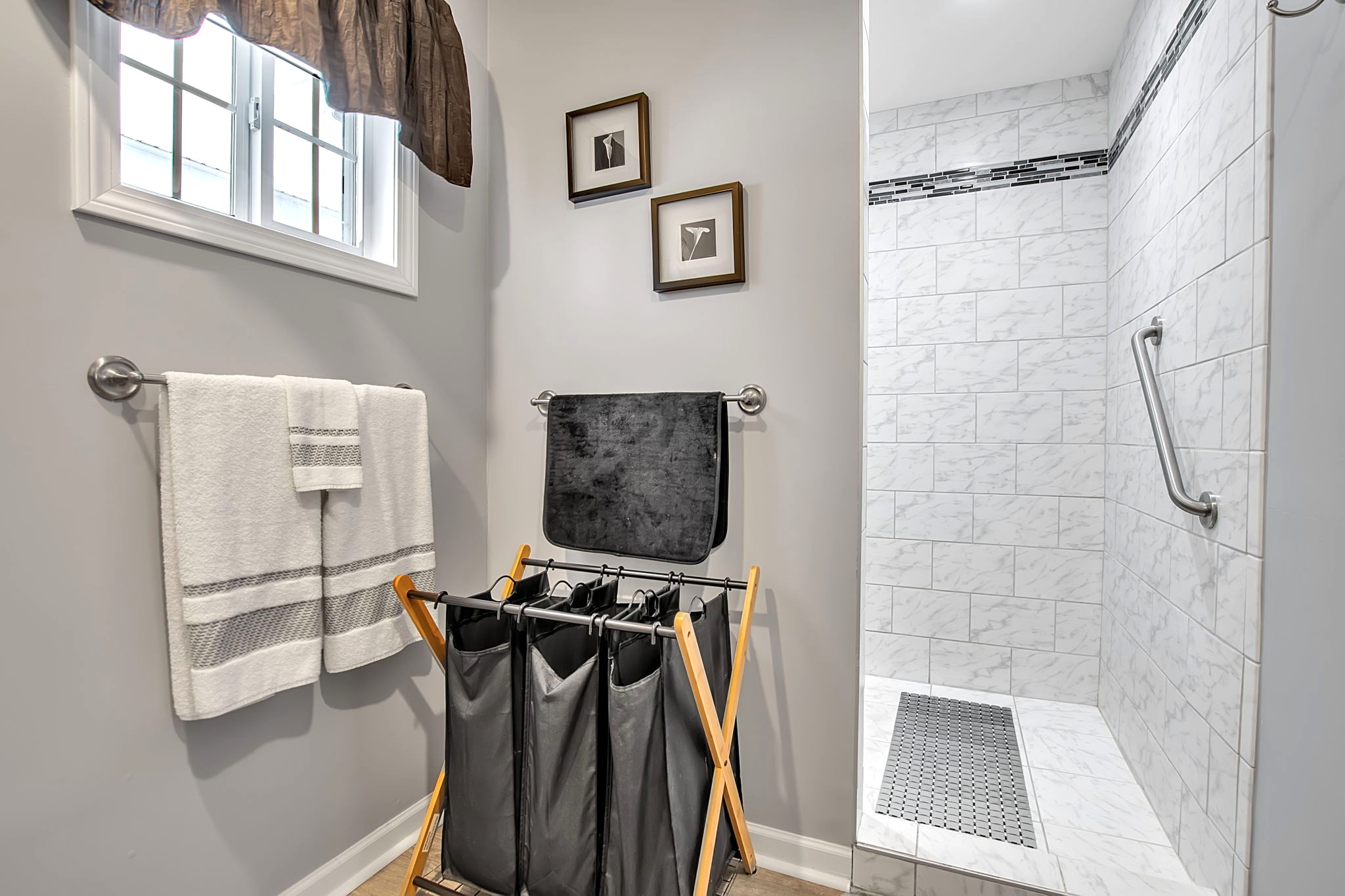 • Primary 1st flr bedroom w/walk-in closet + oversized tiled shower
